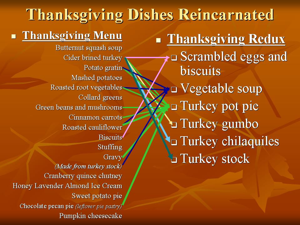 Thanksgiving Redux: How one meal was reinvented into six different incarnations (click to enlarge)